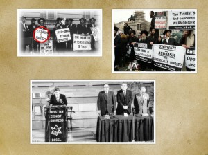 Foto: demo anti-Israel yang dilakukan orang Yahudi, mereka menyamakan Zionisme dengan Nazi; dan kejahatan Israel di Gaza sama dengan Holocaust; bawah: foto kongres Kristen Zionis.