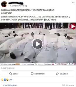Dalam video itu terlihat mayat-mayat bergerak. Kata ZSM: “Inilah akting orang-orang Palestina, ngaku-ngaku korban tentara Israel, padahal cuma pura-pura mati.”