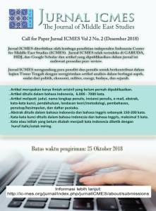 Jurnal ICMES diterbitkan oleh lembaga penelitian independen Indonesia Center for Middle East Studies (ICMES). Jurnal ICMES telah terindeks di GARUDA, ISDJ, dan Google Scholar dan artikel yang dipublikasikan dalam jurnal ini melewati prosedur peer-review.