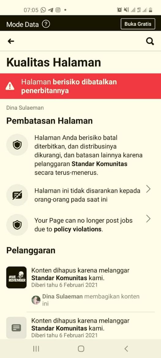 Hari ini muncul ancaman lagi, dengan menyebut kesalahan yang sama disertai tuduhan “Anda telah melanggar standar komunitas kami terus-menerus”.