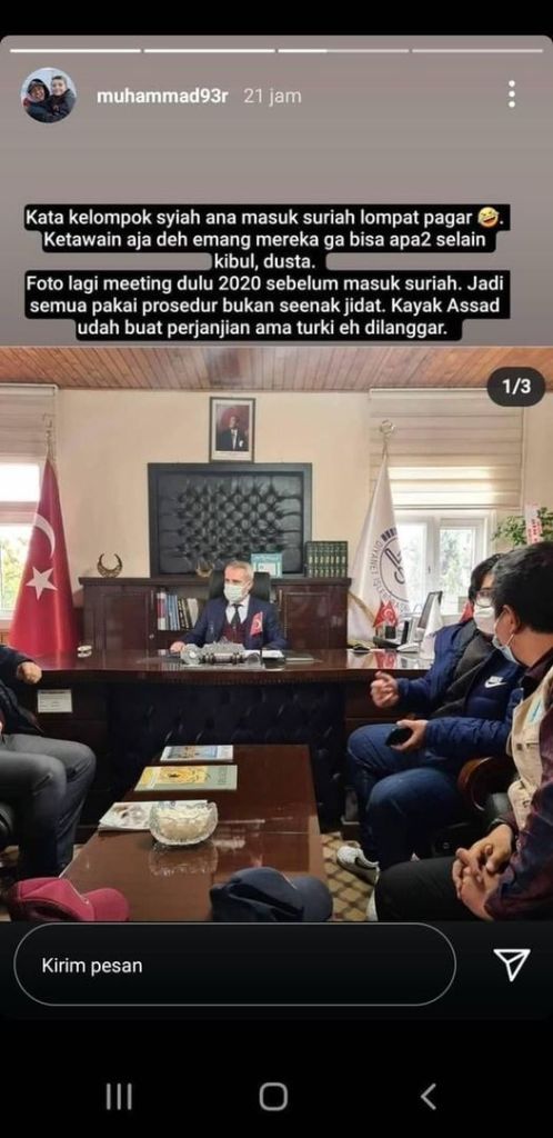 Kembali ke foto ini.Si orang yang upload foto ini berniat pamer: “Kami ini masuk secara legal ke Suriah, ini buktinya kami sudah izin Turki.”