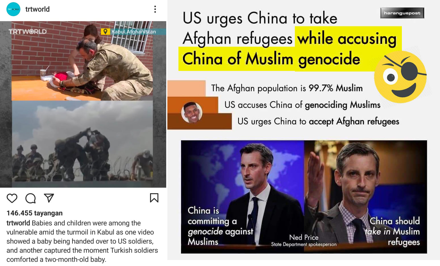 Lalu, siapa yang paling rajin teriak-teriak bahwa China menindas Muslim (Uighur)? Di Indonesia, ya kalian tho? Kalau di dunia, ya Amerika Serikat. Nah, apakah kalian tahu bahwa AS minta China untuk ikut menampung pengungsi Afghan?
