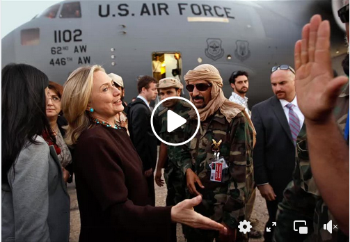 18 Oktober 2011, Menlu AS, Hillary Clinton datang ke Tripoli, bertemu dengan Mustafa Abdel Jalil dan pasukan pemberontak; bersalaman dan berfoto akrab dengan para “mujahidin” ini.