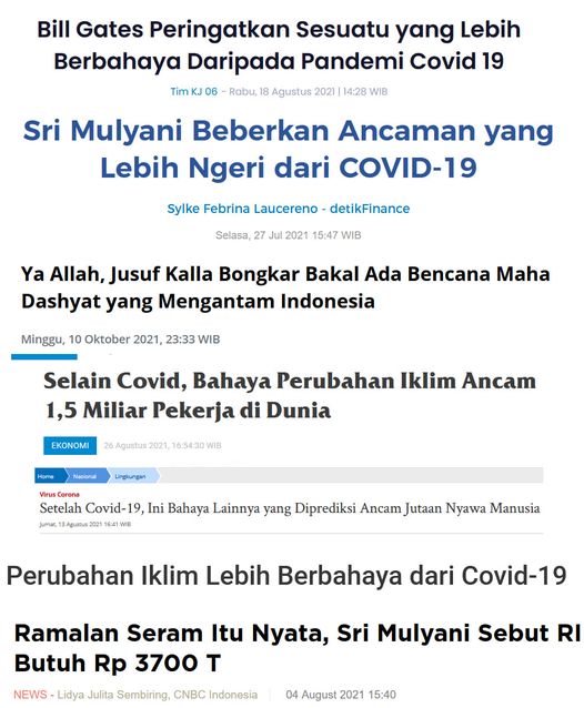 Sejak beberapa bulan terakhir, saya perhatikan, media mulai rame memberitakan soal “ancaman yang lebih seram” atau “ancaman yang lebih ngeri” daripada Covid.