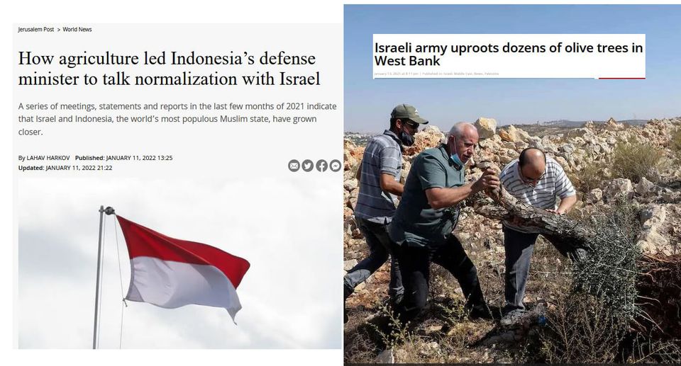 Karena itulah, sangat absurd kalau pertanian digadang-gadang sebagai “pintu” untuk membuka hubungan diplomatik Indonesia-Israel. Berita Jerusalem Post (11 Jan 2022) yang saya tampilkan screenshotnya ini, berjudul “Bagaimana pertanian membuat menteri pertahanan Indonesia berbicara tentang normalisasi dengan Israel.”