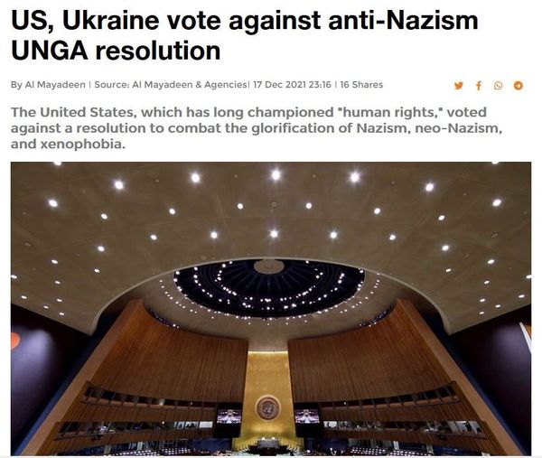 Foto: AS dan Ukraina memilih “menolak” resolusi anti-Nazisme di Sidang Umum PBB (Desember 2021)