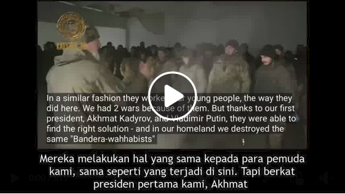 Di video ini terlihat, ada puluhan/ratusan tentara Ukraina yang menyerah sukarela. Mereka diceramahi oleh pimpinan tentara Chehcnya, yang menjelaskan kesamaan antara Bandera (tokoh Nazi era PD II yang dijadikan pahlawan oleh sebagian orang Ukraina, sehingga mereka disebut “neo-Nazi”) dengan teroris Wahabi yang menebar teror di negeri-negeri Muslim termasuk Chechnya.