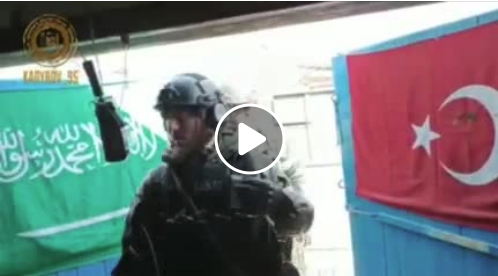Di video: tentara Chechnya menemukan ada bendera Saudi dan Turki di salah satu lokasi di Mariupol. Saya ga ngerti bahasa Chechnya ya, tapi bisa kita lihat si tentara menyebut syahadat saat melepaskan bendera hijau (sepertinya, dia menghormati bendera itu karena ada syahadatnya, sehingga mau diambil saja benderanya). Sumber video: channel Telegram Ramzan Kadyrov.