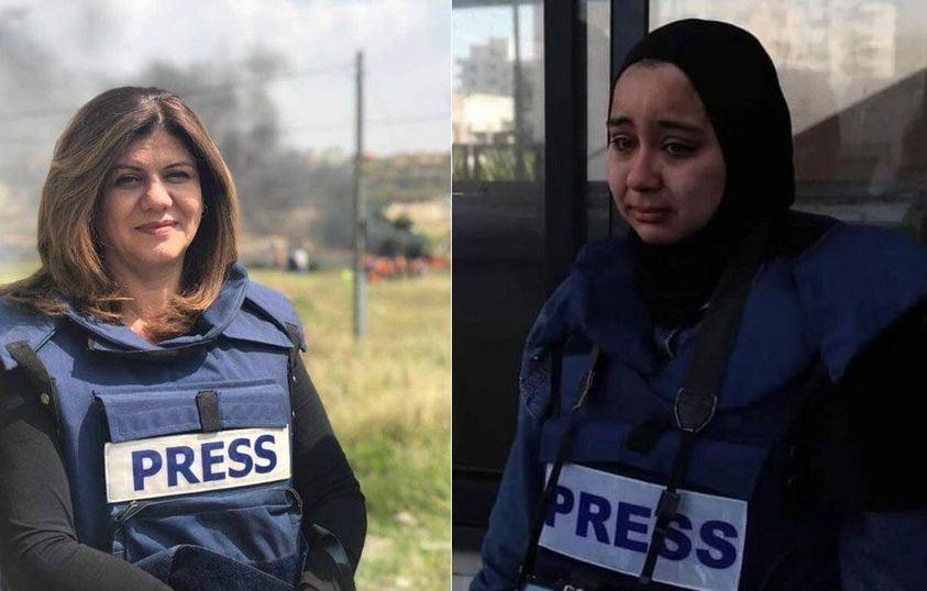 Jurnalis Palestina, Shatha Hanaysha, sedang bersama Shireen Abu Aqla (kadang ditulis Abu Akleh) ketika mereka diserang oleh sniper Israel, di Jenin, Tepi Barat.