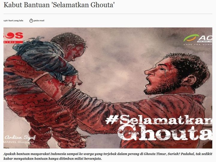 Copas: “Hingga Senin pekan lalu, donasi yang terkumpul untuk Ghouta mencapai 11,6 miliar rupiah,” kata juru bicara ACT, Lukman Aziz Kurniawan, ketika menerima INDOPRESS.ID di kantornya, Jakarta, Kamis 15 Maret. Lukman bilang, baliho ‘Selamatkan Ghouta’ telah terpajang di hampir seluruh wilayah Indonesia, termasuk Papua.