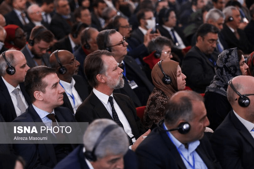 Di foto, Anda lihat, posisi duduk saya berbaur di tengah kaum laki-laki. Kameramen di acara ini, sebagian besar malah perempuan, dengan membawa kamera-kamera besar. Saya sempat memotret mereka, tapi hasilnya gelap. Saya saat itu sedang kurang fit jadi males banget berfoto-foto. Untung ada foto-foto dari kantor berita ISNA ini.