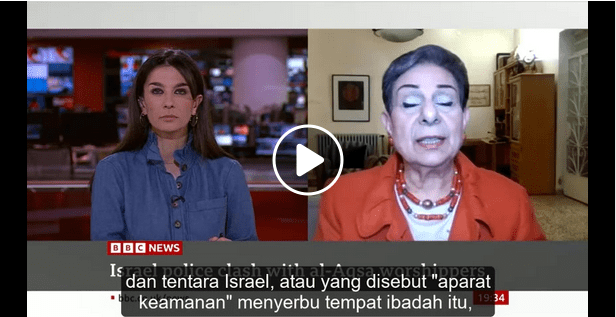 Dr. Hanan Ashrawi adalah seorang tokoh perempuan terkemuka Palestina. Ia penganut Kristiani. Perempuan tangguh ini mampu menjawab dengan makjleb pertanyaan-pertanyaan reporter BBC yang sangat bias, dan sengaja menggiring opini untuk menyalahkan Palestina. Padahal sedang bahas soal kejahatan Israel di masjid Al Aqsa, dia nanya “Pemerintah Palestina kan korup?”
