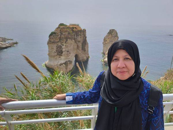 Foto: (1) saya di depan Rock of Raouche, Beirut (2) saya dan peserta konferensi dari Irlandia, Italia, dan Serbia.