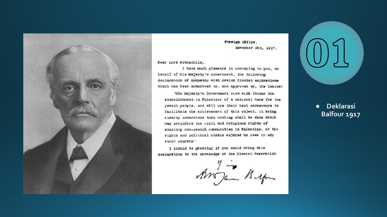Jadi, sejak awal Lord Balfour ini sudah sudah mendeteksi bahwa pastinya akan timbul konflik atau masalah ketika di sebuah wilayah historic Palestine yang memang belum menjadi negara akan dibentuk sebuah entitas negara baru. Dan di kala wilayah Palestine berada di bawah kekaisaran Ottoman.