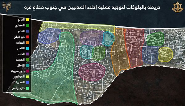 Apa yang dilakukan Israel? Untuk menunjukkan “usaha melindungi warga sipil”, Israel menjatuhkan pamflet-pamflet evakuasi ke tengah warga Palestina, isinya kode QR yang mengarah ke peta ini, yaitu area yang perlu “dievakuasi” karena akan dibom Israel.