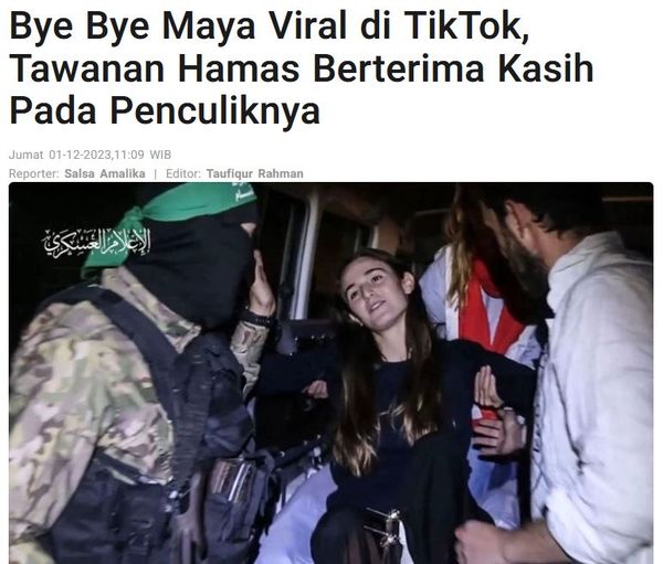 Seorang wanita Israel yang diwawancarai TV Israel, bercerita, pejuang Palestina saat datang ke rumahnya (dalam operasi 7 Oktober) bahkan minta izin dulu saat mau ambil pisang di dapur, dan berkata, “Jangan takut, kami Muslim, kami tidak akan melukai Anda.”
