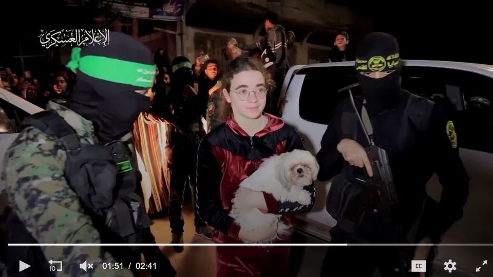 Mia Leimberg disandera Hamas saat sedang berada di Kibbutz (permukiman Yahudi-Israel). Ia menyembunyikan anjingnya, Bella, di balik jaketnya. Bella anjing yang tenang, sehingga tidak ada yang menyadari bahwa Mia membawa anjing hidup, mereka kira itu boneka.