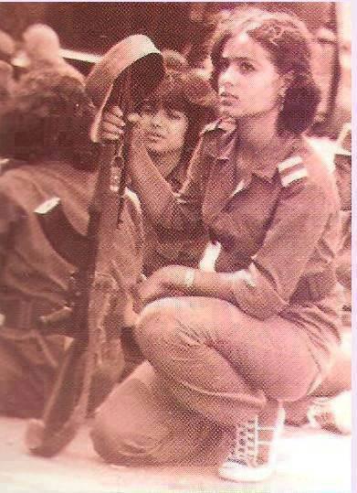 Di foto ini, pejuang perempuan Palestina, yang selain berjuang lewat edukasi, ketika diperlukan, ya ikut angkat senjata juga. Namanya Shadia Abu Ghazaleh. Ia lahir di Nablus (Tepi Barat) pada tanggal 8 Januari 1948 (5 bulan sebelum “Israel” dideklarasikan).